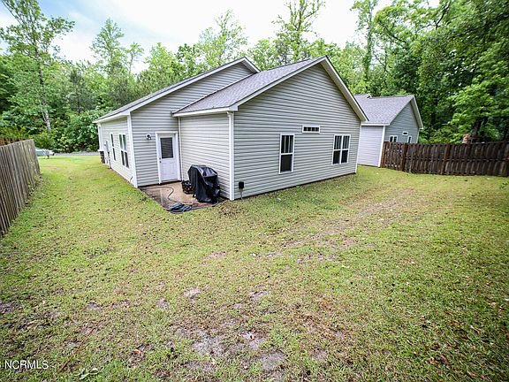 Located in the heart of Hampstead, this charming one-story half duplex offers 3 bedrooms and 2 baths on a private street. The open living area is bright and welcoming, featuring LVP flooring and a stylish trey ceiling. The kitchen is equipped with stainless steel appliances, a pantry, and even includes the refrigerator. The master bedroom is a true oasis with its own trey ceiling, a large walk-in closet, and a private bathroom with two sinks and lovely backyard views. Additional amenities include a 2-car garage and a convenient outside storage room. Enjoy the peaceful surroundings of mature trees and a private road, with easy access to Highway 17 at a stoplight. This is the perfect place to call home, offering both affordability and a prime location.