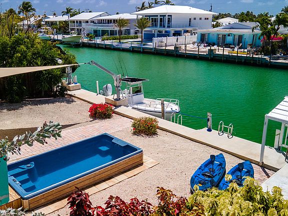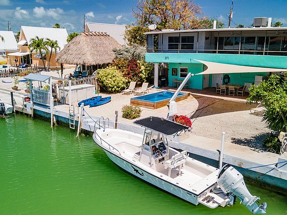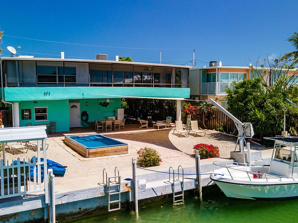 Weekly Vacation Rental in Key Colony Beach, recently updated, Dockage, Cabana Club, 4BR/3BA, Sleeps 10. Weekly Rentals Start at $3450/week and Monthly rentals start at $12000/month depending on the season/month. Contact for availability! This canal frontage property boasts 60 feet of concrete seawall dockage, fish cleaning station, easy access to both the Gulf and Ocean. Relax in the partially-shaded backyard and heated pool, or take a short walk to the Cabana Club (passes included w/rental) to enjoy a private beach, pool, eats and drinks. Spacious 4 bdrm, 3 bath, sleeps 10. Main floor boasts two large king bedrooms, including a master with full master bath, full guest bath, spacious living and dining rooms, and kitchen open to screened-in, wrap-around porch, canal views and breathtaking sunsets. Enter on the lower level, where you'll find two bedrooms (one queen, one with two twin beds), bathroom with shower, laundry room and quick access to the backyard. Additional amenities and features include: covered parking, cable and Roku on 4 TVs, Keurig, updated appliances, basic dinnerware, bakeware, cookware and small appliances, washer, dryer, luggage racks, laundry baskets, linens, beach towels, outdoor refrigerator, bait freezer and grill. 2 twin roll-away memory foam beds on-site. This vacation rental requires minimum 7 night rental. No exceptions. Weekly / Monthly / all utilities
