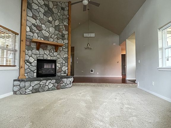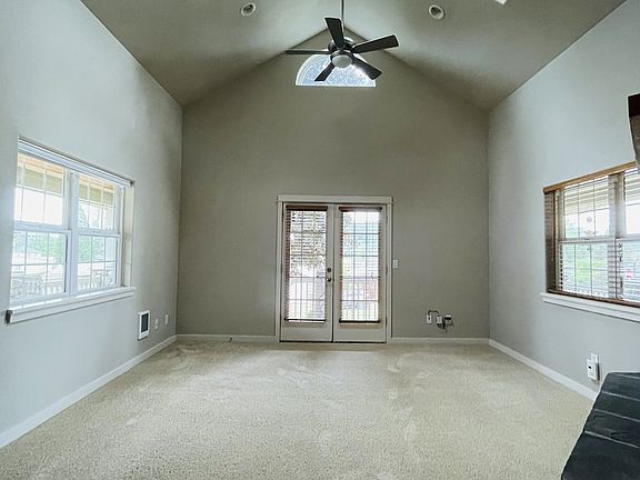 - Features: Ceiling Fan, Fireplace, French Doors, Skylight, Vaulted Ceiling, Wallto Wall Carpet