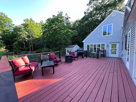 Custom designed 4-bedroom, 3-bathroom Cape on a serene 5-acre lot in Henniker, NH. With almost 4000 square feet of living space, this home offers both comfort and style. The property is set back from the road, ensuring privacy. The attached garage adds convenience, and the open layout inside is perfect for modern living. The large kitchen features an island with granite countertops and extensive cabinetry. Spend a cozy day in the family room with gorgeous woodwork and Rumford fireplace. Enjoy the beauty of birch, cherry, hickory, and red pine flooring . The sunroom is a bright and inviting space, while the renovated game room above the garage is perfect for entertainment. On the first floor is a separate entrance that leads to a large mufti functional room and bathroom. Perfect for guests, in law, or extra family room. Perfect possible Air B and B space! Outside, the large deck overlooks a heated in-ground pool, with mature landscaping making it ideal for summer relaxation. This home’s prime location is a true highlight, offering easy access to the region's finest outdoor amenities. Enjoy nearby lakes for boating and fishing, or hit the slopes at Pats Peak Ski Mountain, just a short drive away. Conveniently located, this property ensures a smooth commute to Concord and Manchester, blending rural tranquility with urban accessibility.