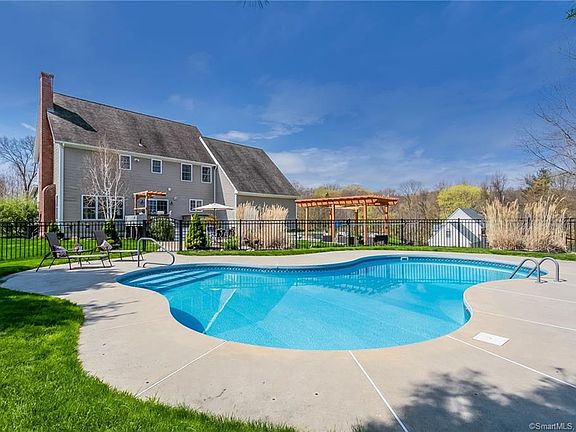You have come home to this well maintained colonial, like new set on 1.36 acres with professionally landscaped grounds. Light bright and open with gleaming hardwood floors, recessed lighting and Front foyer open to office/living area includes french doors and plantation shutters. Formal dining with chair rail and picture frame molding . Kitchen includes stainless appliances and granite counters with undermount cabinet lighting, center island open to eat in breakfast area that leads to family room with fireplace. Gracious master suite with computer room, full bath with jetted tub and walk in closet, Three additional bedrooms all with walk in closets. The fourth bedroom is oversized and is currently being used as game room. Second floor laundry and full bath complete this level. The backyard is the perfect place to enjoy a staycation with brand new patio and pergola, inground pool and deck with bar and grilling area. As summer approaches just imagine entertaining family and friends. After a long day at work relax by the pool or better yet just jump right in! Cair, cvac, security system. Easy access to Hartford. See this today!! Special Financing Incentives available on this property from Sirva Mortgage
