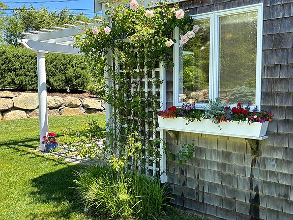 Fantastic Chatham opportunity for a thoughtful urn-key renovation! Dramatic hardscaping & seaside plantings encompass a light & bright home abutting conservation with peaceful views & privacy. On the coveted ''LOOP'' location, sidewalks will take you to the village center & sandy beaches. Set back down the shell driveway is a sophisticated tidy cottage with cathedral ceilings, fine finishes, detailed surround gas fireplaces, a stunning new kitchen & luxurious bathrooms. The refined interior has a wonderful open entertaining space with glass sliders to the south-facing deck overlooking the tranquil back garden expanse, herb beds & busy birdhouses. This single-story living is clever and comfortable separating the stunning main bedroom suite from the guest wing comprised of two bedrooms with their own sliders, a shared bathroom and stone patio with pergola. Downstairs is a family room with fireplace, half bath, additional W/D hook up and outdoor shower for the overflow of summer visitors. A utility room & unfinished walk-out bonus room awaits your personal touches. Come see this sweet stylish sanctuary! Perfect for summer fun & year round living