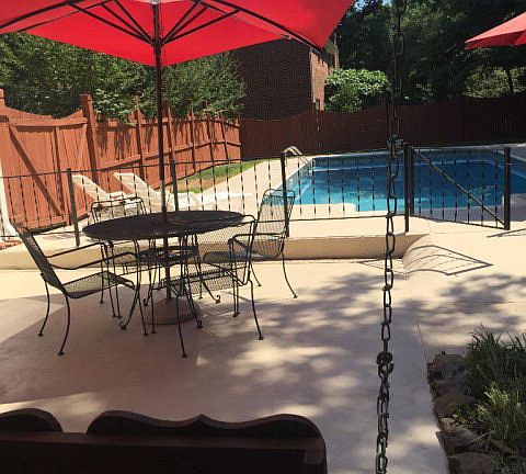 MAKE A BIG SPLASH WITH THIS STUNNING WILLIAMSBURG CHARM! DOUBLE STEPS TO AN ELEGANT FRONT ENTRY INTO FORMAL FOYER, LIVING AND DINING ROOMS. ENJOY THE LARGE FAMILY ROOM WITH FIREPLACE, 9 FOOT CEILING, TRANSOM OVER DOUBLE DOORWAYS. COMPLETELY RENTOVATED KITCHEN BOASTING CUSTOM CABINETS, GRANITE COUNTERTOPS, TILED FLOORS, BRAND NEW WALL OVEN AND MICROWAVE, STAINLESS STEEL APPLIANCES, LARGE SINK WITH GOOSENECK FAUCET. BREAKFAST ROOM WITH 2 DECK AREA, TV CABINET, ISLAND, BAY WINDOW WITH PLANTATION SHUTTERS OVER LOOKING A LOW MAINTENANCE SALT WATER POOL SURROUNDED BY PATIO, PRIVACY FENCE, PLAY AREA OR DOG RUN. HUGE OWNERS SUITE AND GRAND, NEW BATH WITH GENEROUS SIZED SEPARATE SHOWER AND GARDEN TUB. 4 TOTAL BEDROOMS PLUS LARGE BONUS/PROJECTOR ROOM OR 2ND FAMILY ROOM WITH BUILT IN BOOKCASES, HUGESTORAGE CLOSET AND EXTERIOR EXIT TO PRIVATE BACKYARD.ARCHITECTURAL SHINGLES AND BOTH HVAC ARE INSTALLED IN LAST 5 YEARS.