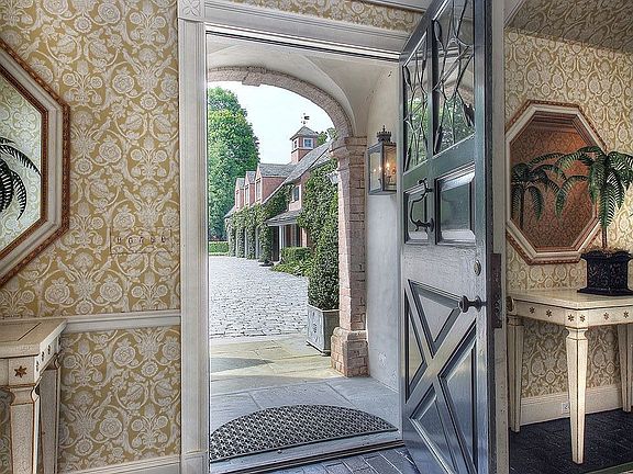 This enchanting house, originally built in 1929 by Ellen Low Pierrepont Moffat, was named Little Thoresby after Thoresby Hall, the ancestral Pierrepont family seat in Nottinghamshire, England. Mrs. Moffat remained there for 30 years. The Crawford family became the next owners and renamed the estate Balcarres after their family house in Rumson, New Jersey (facts according to Jack Turpin's book The Somerset Hills, Vol. 2). There have been several owners since then who have improved, updated and added to the original estate, currently making it a "new" old and charming property. A newly designed Belgian block-lined stone drive leads to an enlarged cobblestone parking court. This one-of-a-kind handmade brick house might remind a visitor of an antique estate in Europe, reminiscent of a bygone romantic era. Exquisite gardens, stately trees, a large pool, expansive lawns and bluestone terraces surround the very private manicured spaces outside. The interior of this beautifully restored and updated house features well proportioned rooms, original painted brick hallway floors, amazing plaster moldings, carved mantles, and all new windows along with preserved leaded glass windows which keep the antique flavor of this exceptional residence. A fabulous circular floating staircase built into an oast house-style turret graces a main hallway. The current owners have carefully updated the original section of the house and added a new wing, seamlessly blending the old and the new for the next owners of this cherished estate.