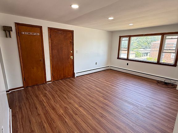 Freshly painted and move-in ready! This bright and spacious apartment features modern recessed lighting, updated flooring, and a beautiful living room with a nice view. There are two additional good-sized rooms, perfect for bedrooms, work-from-home space, or extra living areas. The kitchen offers a cozy rustic charm with updated floors and warm wood cabinetry, plus a clean, functional bathroom.