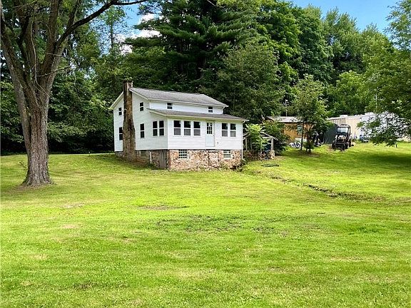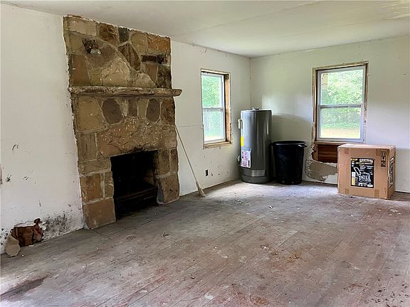 This home sits on a beautiful 1.63-acre lot surrounded by tranquil creek on 3 sides. The home has new siding, new roof and windows. The inside is in need of a complete renovation, but worth making it your own with the beautiful setting. All trailers to the left of the property (not part of this property) will be removed. Needs a well, seller is installing new lines to the septic system due to old terra cotta lines needing replaced. Seller is removing the upstairs debris. Any building supplies in the house will remain. Please Park in the driveway, do not drive in the yard.