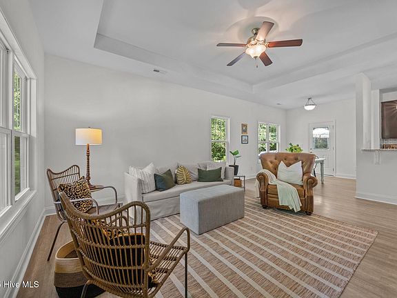 Discover privacy in the heart of Hampstead with this charming 3-bedroom home. Nestled in a quiet, private setting away from busy streets, this single-story residence offers 3 bedrooms and 2 baths. The living area is filled with natural light, features LVP flooring, and a vaulted ceiling, creating a spacious and welcoming atmosphere. The kitchen boasts solid wood cabinets, a pantry, and stainless appliances. The master bedroom includes a trey ceiling, walk-in closet, private bath, and serene backyard views. The fenced backyard provides a safe, private, and peaceful space for outdoor activities and relaxation. Surrounded by trees and nature, it offers a tranquil retreat. Enjoy the added privacy of only sharing the space with one other unit, connected by an external storage room, and a 2-car garage. Located on a private road with easy access to Hwy 17, this property perfectly combines privacy, comfort, and convenience. For an easier way into the neighborhood. Take factory road to Majestic Oaks.