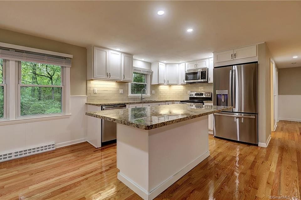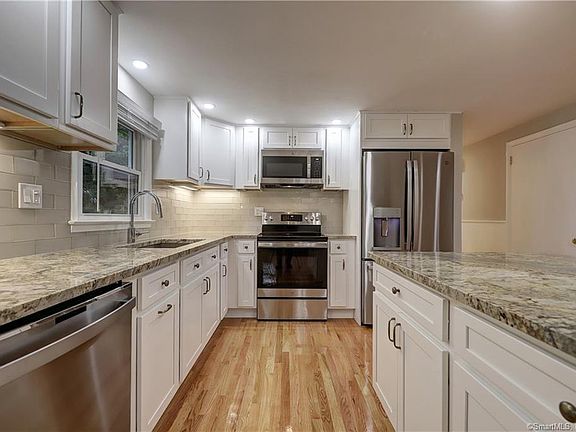 Stunning rental property that was just renovated from top to bottom! Located in the desirable area of Guilford just minutes to the Historic Guilford Green and highway. You will be impressed by the spacious kitchen complete with stainless steel appliances, granite countertops, a large island, and built-in bar with storage. Connected to the kitchen is a large living room with tons of natural light. There are three generous sized bedrooms all with big closets. The full bathroom has been totally redone with new vanity and tile. Enjoy the convenience of having in-unit laundry, your own parking space in the garage as well as 4 additional parking spaces in the driveway, central air and private stone patio in the yard. This unit is perfect for commuters, Yale, New Haven, schools and shopping. Come tour this property today! Small dogs and cats allowed.