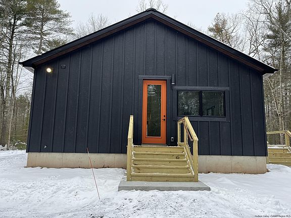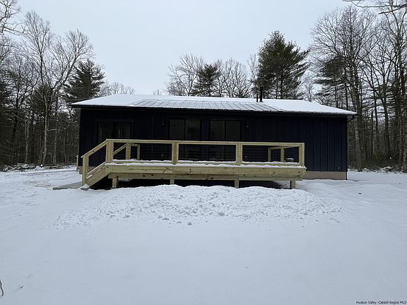 CONSTRUCTION COMPLETE! Come visit this modern take on a 'classic cabin' nestled in the woods and located on a quiet country road in the Town of Lumberland. The Lochada Cabin offers deeded lake rights to Loch Ada Lake, LP SmartSide Board and Batten with black Andersen 400 Series casement windows and a standing seam metal roof. Equipped with 3 Bedrooms and 3 Full Baths, this open floor concept features total first floor living with hardwood floors throughout, central A/C and an abundance of natural light. Come enjoy the oversized Kitchen with a large center island equipped with stainless steel appliances. The larger vaulted Family Room with cozy fireplace looks out to the double doors leading to the oversized 10x24 rear deck. The Primary Bedroom also includes vaulted ceilings, walk in closet and a private bath with 6’ custom shower and double vanity. A full unfinished Basement for future expansion and open cell spray foam make this home both practical and efficient. Come be part of the Catskill Revival and enjoy nearby Bethel Woods Center for the Arts, Kartite Indoor Water Park, Resort World Casino or take in nature with nearby rafting, hiking, biking and more.
