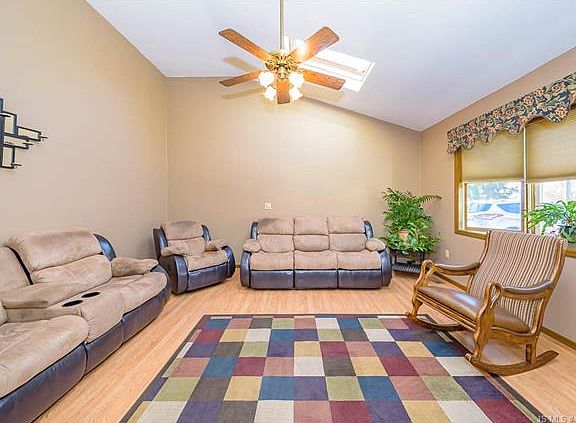 Charming and move-in ready ranch with 3 bedrooms and 2 bathrooms. Large entry ways, hardwood floors throughout. Formal living room leads into a family room with raised ceilings, skylight and bay window. Formal dining with walk out to yard. Eat-in-kitchen has stainless steel appliances, pantry, raised ceilings, recessed lights, skylights and plenty of storage. Master bedroom features a master bathroom with a jetted tub and recessed lighting. Laundry room for convenience. Deck and paver patio attached to home; a great place to entertain. Another deck ready for an above ground pool and large garden bed that can be used as flower, vegetable or fruit garden. Attached 1 car garage and 2 car parking. Beautifully kept home. A must see! Book your appointment!