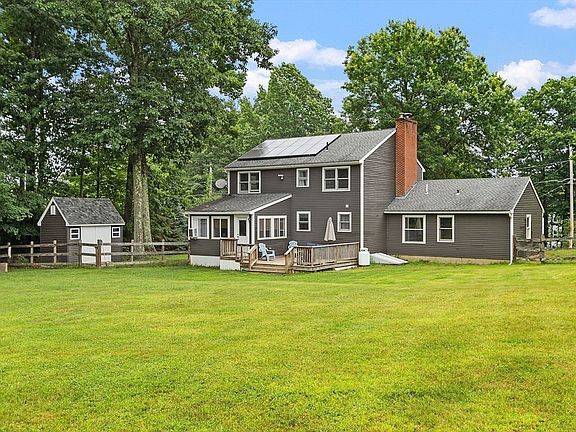 Welcome to your dream home! This Modern 1987 Colonial Garrison with attached garage boasts 1,972 sq. ft. of living space, offering 4 spacious bedrooms and one and a half bathrooms. **Prime Location** Situated on a beautiful, flat, .62-acre corner lot with clear, fenced-in yard in the desirable Heights of Athol, you’ll enjoy nearby walking trails with incredible picturesque views. **Energy Efficiency**: Fully owned solar panels significantly reduce your electric bill! Currently averages $51 a month year-round. **Kitchen** Fully renovated in 2018 soft-close cabinets and drawers and stainless steel appliances. **Comfort and Warmth** Energy-efficient Buderus boiler (2009) Harmon pellet stove. **Outdoor Living** Relax in your Four Seasons heated sunroom or on the deck, overlooking your beautiful fenced-in yard. **Additional Updates** New roof 2010, refinished hardwood floors 2012, Exterior paint 2017, Custom shed built 2020, Upstairs bathroom 2024. Delayed showings until OH Sat the 3rd 11-1