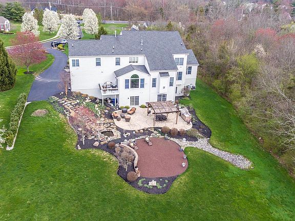 Exquisite in every detail, this 5 bedroom, 4.1 bath CUSTOM stucco free estate home has all that any homeowner could ask for! Located on an amazing PREMIUM LOT bordering private wetlands in the highly sought after community of HIGH GATE, this exceptional home features an open floor plan, chef's kitchen with grand morning room, 24 foot conservatory, 2 story family room, full finished terrace level basement with wet bar, wine cellar and sliders to a large patio with outdoor kitchen. You'll love the gleaming hardwood floors on most of the main level, stairway and hall, extensive millwork and trim throughout, 9 foot ceilings on all levels, surround sound and recessed lighting. The grand 2 story foyer with circular stairway is open to the living room and dining room which flows into the fantastic island kitchen with natural cherry cabinetry, double wall ovens, gas cooktop, wine fridge and morning room with vaulted ceiling and sliders to an elevated composite deck which overlooks the lush tree-lined backyard. The adjoining 2 story family room is accented with a gas fireplace, and is steps away from the study/office with built-ins and great views of the beautiful backyard. Off of the living room is the sun-filled Conservatory which is highlighted with a tile floor surrounded by windows. A walk-in pantry, laundry room with Century white mocha glazed cabinetry and half bath complete the main level. The second level features a huge main bedroom suite with sitting area, built-in shelving and gas fireplace, his and hers custom walk-in closets and master bath with soaking tub and frameless shower. Three sizeable bedrooms with 2 full baths (1 ensuite) round out this level. The 1,907 square foot finished walk-out basement features custom bar with cherry cabinetry, granite, refrigerator and garbage disposal, fantastic 2,000 bottle wine cellar and tasting room with redwood shelving, imported tile and temperature controlled Whisper Kool PDT cooling system. This level also includes a 5th bedroom, full bath and several areas for entertaining or viewing your favorite movies, plus tons of storage. Enjoy the outdoors on the 1,175 square foot stamped concrete patio with 25 foot fieldstone retaining wall, pond with waterfall and outdoor kitchen with Coventry Block Kitchen unit, travertine counter, lighting, refrigerator with lock, Fire Magic Eschelon Series Grill, and Sonoma 16X16 foot arched roof pergola with latticework. A truly exceptional home, close to major routes, downtown Ambler, Trader Joes, Wegmans and NO STUCCO!