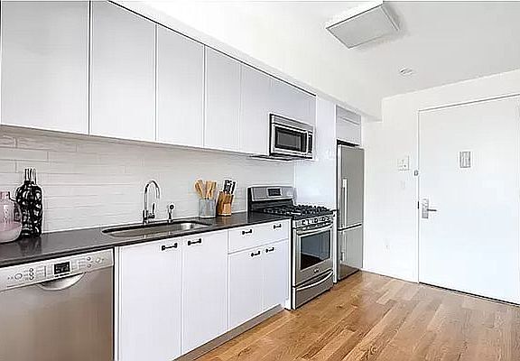 Beautiful, condo quality, studio apartment in Williamsburg.. Located in a high-end building that features doorman service, elevators, a spacious lounge, a fitness center, a washer and dryer in each apartment, and breathtaking views of the Brooklyn's skyline. Unit: - High-end Kitchen with stainless steel appliances - Dishwasher, microwave, 5 burner gas range with a convection oven - Hardwood floors - Large windows with lots of natural light - In-unit washer and dryer Building Amenities: - Full-time doorman - Expansive rooftop with views of Brooklyn & Manhattan - Bike storage option available - Gym - One large lounge Location: - Steps away from the Graham Avenue L Station - Close to McCarren Park - Surrounded by Williamsburg's best dining and night life venues. *The photos in this listing are for marketing purposes. The available unit layout may vary.