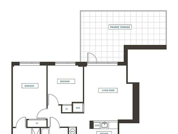 Huge Private Terrace! Beautiful, condo quality, 2 Bedroom 2 Bathroom apartment in Williamsburg. Located in a high-end building that features doorman service, elevators, a spacious lounge, a fitness center, a washer and dryer in each apartment, and breathtaking views of the Brooklyn's skyline. Unit: - High-end Kitchen with stainless steel appliances - Dishwasher, microwave, 5 burner gas range with a convection oven - Hardwood floors - Large windows with lots of natural light - In-unit washer and dryer Building Amenities: - Full-time doorman - Expansive rooftop with views of Brooklyn & Manhattan - Bike storage option available - Gym - One large lounge Location: - Steps away from the Graham Avenue L Station - Close to McCarren Park - Surrounded by Williamsburg's best dining and night life venues. *The photos in this listing are for marketing purposes. The available unit layout may vary.