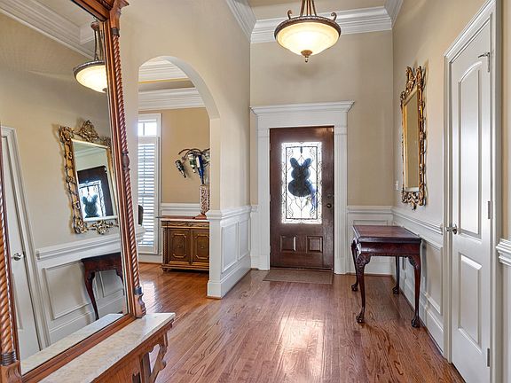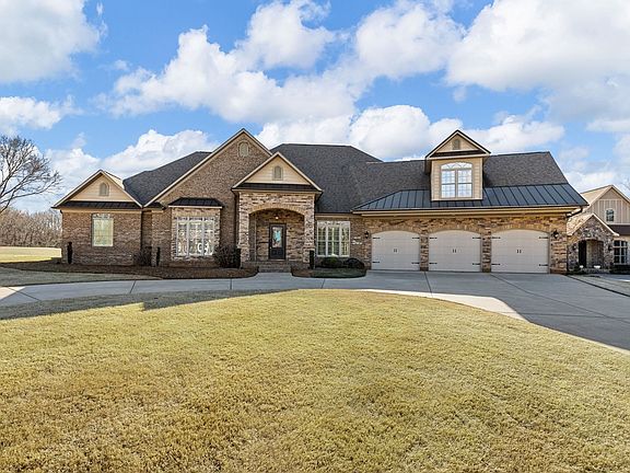 Welcome home to 371 Island Green Lane where your journey begins. This beauty is located in the premier golf community of Woodfin Ridge. 3 car garage, 4 bedrooms, 4 full baths with flex space/bonus room that could serve as 5th bedroom. The moment you arrive, appreciate the details of the lovely exterior architectural details of brick and stacked stone, carriage style garage doors and the circular governors drive that provides additional parking. Situated on a .57 cul-de-sac lot with treasured water views and the 15th hole island green. This beauty is filled with details to cherish beginning with the hallmark covered porch to greet family and friends. As you open the door, appreciate details from hardwood floors that grace the main level living areas. crown moldings, built-ins and so much more. The dining room is located off the foyer and features transom windows, architectural detailed trey ceiling, gorgeous crown molding and wainscoting. Admire the butlers pantry with sink that is the perfect serving area or bar area. They say the heart of the home is the kitchen and this one will not disappoint. This impressive kitchen with rich cabinetry and plentiful counter space boasts details that even the most discerning chef will appreciate. Double ovens, microwave, gas cooktop, pot-filler, slide-out spice racks, ice machine, sought -after walk-in pantry, dine-at counter area and so much more. The informal dining area charms with exquisite built-ins and overlooks that peaceful backyard view. The very spacious owners suite has access to the covered porch, two walk-in closets and an architectural detailed trey ceiling. Owners bath boasts double vanities, beautiful built-in cabinetry, a whirlpool tub, an oversized handsome tiled shower and separate water closet. One guest bedroom has its own private full bath. Two more bedrooms are located on the back side of the home (one is being utilized as an office). A full bath is just across the hall from these two bedrooms. The laundry closet has nice cabinetry and a sink between washer & dryer and is located off hallway leading to garage. The unique, huge bonus room upstairs features a full bath, a storage closet and walk-out attic storage and is wired for surround. You, your family and friends will enjoy relaxing on the spacious porch while admiring the beautiful fenced yard and the beautiful views of the #15 hole island green and pond.