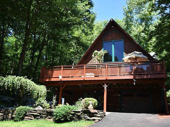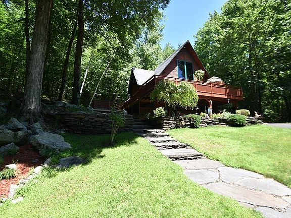 A FEEL OF TELLURIDE COLORADO IN WESTHAMPTON will be your first impression as you drive up the newly paved driveway to this contemporary home set back on 2 wooded acres with privacy and southerly sunshine. From the multiple decks you will enjoy viewing the professionally designed landscaping, expansive Goshen Stone walkways and stonewalls. Framing this home in just the right way. Once inside, the updated kitchen with granite and stainless adds a nice touch. The vaulted wood ceiling lends itself to a sense of open space. This southerly facing home with ample glass allows for tons of sun and light. The master suite and bath sit alone on the second floor. The adjoining loft area is a perfect setting to relax, read a book or just take in the country feel. Only 2 miles West of Outlook Farm. An easy drive ! This is a pretty unique home !