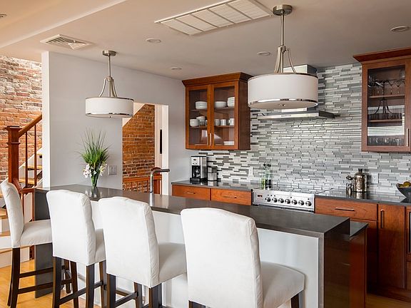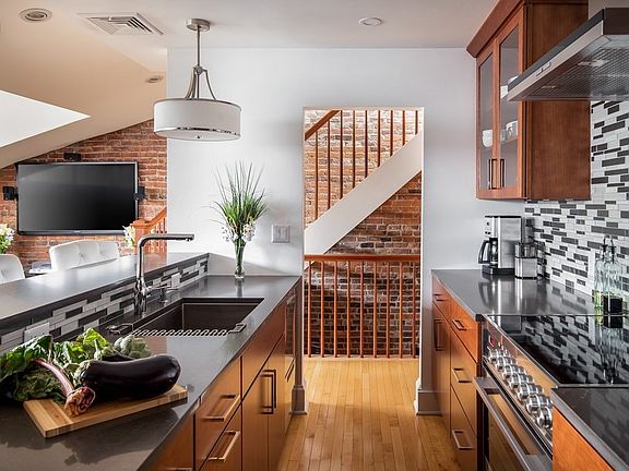 Beautiful Back Bay penthouse on gorgeous tree-lined Marlborough Street in four unit brownstone. Newly built, private roof deck with full staircase and stunning views of the Prudential Center and Charles River. Renovated kitchen features premium appliances, quartz eat-in countertops, cherry cabinets, and integrated bar with wine refrigerator. Sundrenched living room with exposed brick and expansive storage closet completes this uninterrupted space. Newer bathroom with radiant tile heat. Hardwood floors throughout, central air conditioning, in unit laundry, walk-in bedroom closet. New gas boiler installed in 2019, new roof installed in 2017. Steps to Newbury St. shops and restaurants, Charles River, Copley Square and public transportation.