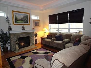 2 years young; granite and hardwood throughout, huge deck partially roof covered; stone accents; tray ceilings with accent lighting; den with french doors; complete one level living; full basement could add lots of square footage with rough ins for wet bar and half bath; beautiful views; stainless and black appliances stay; level entry; close to 79, meadowlands and tanger outlets; open concept; great space for entertaining; laudry off of kitchen; large master bath with walk in shower; 2 doors to deck