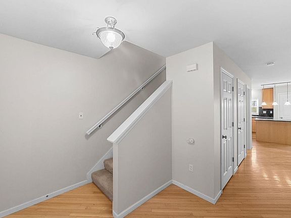 More pictures this Friday (3/15). This charming 2-bedroom, 1.5-bathroom townhome is situated in St. Charles, just a stone's throw away from the bridge and conveniently located near major highways. The home boasts stunning diagonal-cut hardwood floors on the main level, adding an elegant touch to the living space. You'll love the open floor plan, designer kitchen, Stainless appliances (including fridge), custom lighting, cozy fireplace, patio, and garage parking. There are 2 upper level bedrooms, including a spacious master bedroom with a huge walk-in closet, as well as a bonus room that could serve as a perfect spot for a computer or study area. The full basement is ready to be finished and roughed in for an additional bath. Location: Suburban