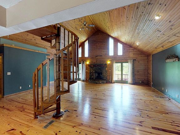 13.05 acres (about 2 acres of pasture (some fenced) & remainder is wooded). Full of wildlife, privacy, & opportunities! Comes with an additional 3 Bed/2 Bath 1,048 sq ft cabin for guests, family or rental income (own driveway). Year round creek across the road, & the drive to this property is some of the most scenic you could ever wish for. Inside, you will appreciate the solid surface counters, solid oak cabinetry, spacious bedroom options, hardwood flooring, ceramic and natural stone flooring, 2 gorgeous walk-in showers, cathedral ceiling in great room with stone FP...so much more! Move-in ready condition! Lots of concrete parking area & shop is 29'2"X23'7". Borders 2,200 leasable acres.