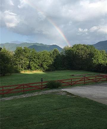 Gorgeous mountain view 3/2 plus bonus room home newly renovated with one level living on 1.5 useable pasture acres. Creek runs along lower pasture. Plenty of fishing and tubing in the Pigeon River just 1/2 mile away. Located in highly sought after Bethel area 10 minutes to downtown Waynesville and 5 minutes to Canton. Large spacious covered and private back patio with no neighbors to view, just wild turkeys, foxes, deer, and so much more wildlife. Newly renovated to include office/mud room, upgraded luxury vinyl plank flooring, new French doors and windows, new upgraded garage doors and openers, new Samsung washer and dryer and freshly painted throughout! 3 stall barn, chicken coop, newly fenced in side yard and partially fenced in pasture. Watch the sunset over the mountains from your front porch. Bring your horses, cows, goats, dogs, chickens and garden tools and enjoy this charming mini farm with pristine well water! No HOA and no restrictions.