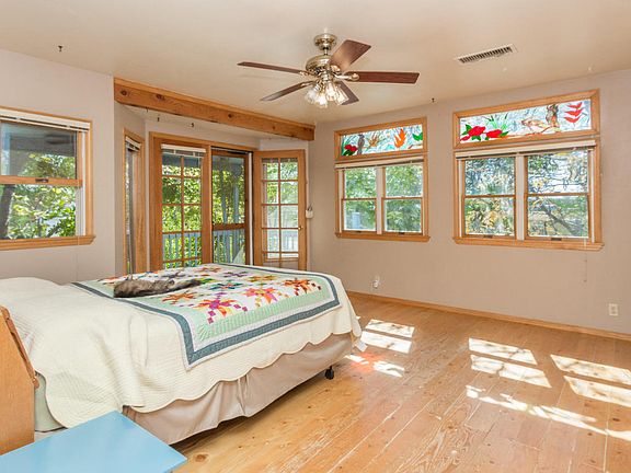 BIRD WATCHERS PARADISE!This is a one of a kind property. Beautiful home on 3.06 ACRES covered in TREES.Wonderful remodeled Kitchen with window views of the back yard retreat. Nice living room with wood burning insert that opens to the dining area. Staircase takes you to the master retreat with private balcony overlooking the fruit orchard and and grapevines. Additional Large room upstairs that would be a wonderful office/den or playroom with loads of natural light. 3 additional bedrooms downstairs and full remodeled bath. Detached Garage with store room and work space. Pump house plus additional storage building and room to park your RV! Level land would be perfect for horse set up and arena.Additional 1.81 acres available to make 4.87 acres for a price of $329,000