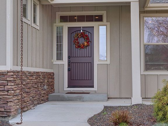 Gorgeous single level home in the heart of Eagle, two blocks from downtown. Home features an open floor plan which is great for entertaining. Kitchen offers slab granite counters, S/S appliances and direct access to large great room with fireplace and dining area. Beautiful Brazilian Fruitwood floors, architectural arches in entry, chair rails, and office with French glass doors. Master Bedroom suite has walk-in closet, slab travertine and tile, dual vanities and separate shower & tub. Bead board and boot bench in the laundry room. Bay window with storage seating in second bedroom. Outside youll enjoy the low maintenance landscaping, large semi-covered patio, 30 year HardiePlank siding, oversized 3 car garage. Nice play park right across the street.