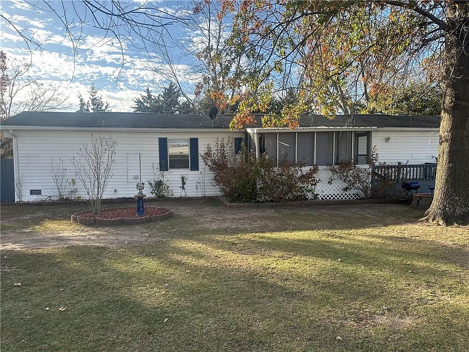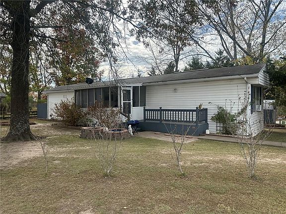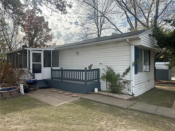 Very nice setting for this home on a hill at the edge of town and close to shopping and movie theater. Nice screened porch in front for dining or enjoying that first cup of coffee in the spring. Living room offers a movable fireplace surround with a new electric free standing stove in front. Seller is leaving living room furniture (NO TV) kitchen dinette with home including a washer and dryer, gas range and refrigerator. This home was a 1973 manufactured home but now taxed as real estate. Seller remodeled adding wood siding, pitched roof, flooring and there is a disclosure to explain all. The home is very cozy for a single or small family or retired persons. The carport for 2 cars and a couple of storage sheds, little fish pond and etc. Bring your cash and come take a look for inexpensive living in a super location SOLD AS-IS.