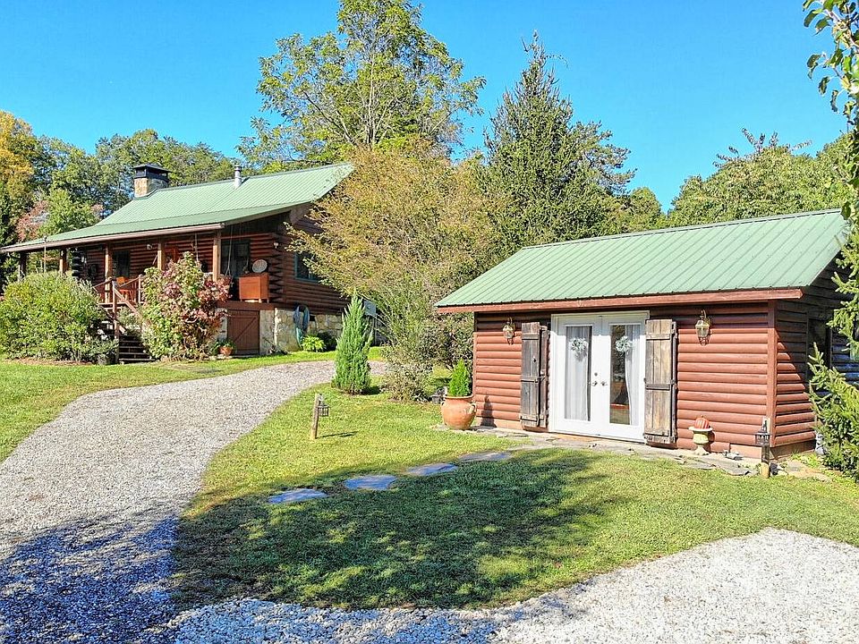 Welcome to Grannies cabin...through a labor of love the family crafted this natural log cabin just for their Grandma. The stones which adorn the fireplace were collected from the local river beds. This mystical 1.48 acres of land is fenced and provides habitat for one hundred year old apple trees, grape vines, and blueberry bushes. If you can pull yourself away from the Mountain View from the front porch and enter the home you will be enthralled by it's layout. Simplistic, but comfortable with all the latest conveniences such as a washer, dryer, dishwasher ductless A/C and propane heating are features in this home. Natural spring water is supplied to the home by a shared well. The property has a separate 400 sq ft established income producing Airbnb rental. Property is located very close to the historical John C. Campbell Folk School history buffs like to stay in the area. Property is a must see.