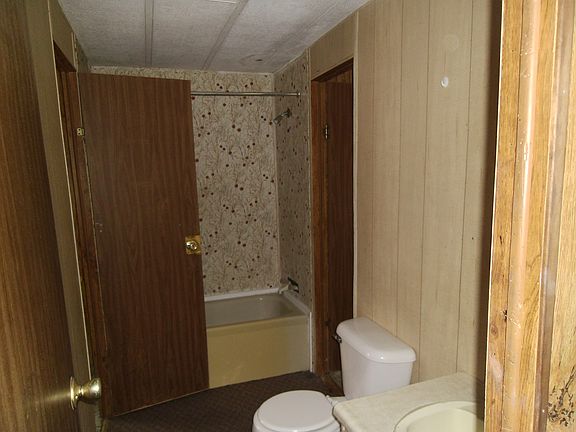 Manufactured home sits on a rented lot. Buyer can either rent the lot from property owner or move to a desired location.