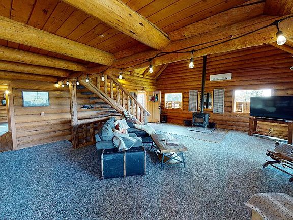 Whether you are looking for a family vacation destination or just want to live in a home that makes you feel like you're on vacation every day, this custom log stunner with Mount Adams views could be the cabin of your dreams. Situated only five minutes from SR-14 on a paved and maintained road, this unique Gorge property is the perfect blend of rustic charm and modern amenities. Enter from the covered front porch into the great room, whose cathedral ceilings framed by natural logs will take your breath away. Picture windows display panoramic views of rolling hills and Mount Adams, which are even better enjoyed from the covered deck. A cozy kitchen features custom cabinetry, granite countertops, and stainless steel appliances. The primary suite is located on the main level, with cathedral ceilings and dual access to the bathroom from the bedroom and the main living space. Another exterior door adjacent to the primary suite opens onto a covered back porch that houses a dry sauna. From the main entrance, take the floating staircase up to the large, multipurpose loft area. Built-in bookshelves offer the perfect backdrop for a reading room or home office. On the other side of the loft, a partial wall creates an opportunity for a bedroom or bunk room, with the bonus of a full bathroom. Another floating staircase leads to the lower level which includes two bedrooms, another full bath, laundry facilities, a second living room with an additional wood-burning stove, and a custom-built wet bar and game room featuring a full-length shuffleboard table and two full-size arcade games which the whole family will enjoy. Bring your furry friends, as well: the lower level exterior door opens onto a dog run (or catio) with yard access. Recent upgrades to this property include new flooring throughout, new windows, updated lighting, new bathroom fixtures, and the addition of gutters and snow brakes, three mini-split heating/cooling units, two storage sheds, the bar/game room, and the dog run. Call to see this slice of Pacific Northwest paradise today!