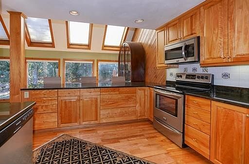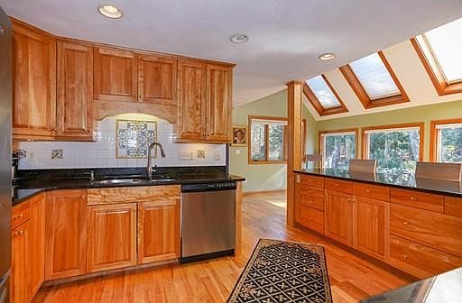 - Kit Dscrp: Main Level, Dining Area, Flooring - Hardwood, Countertops - Stone/Granite/Solid, Skylight, Kitchen Island, Stainless Steel Appliances, Open Floor Plan