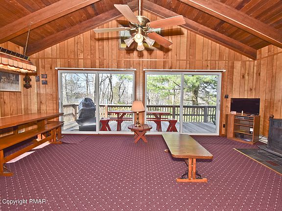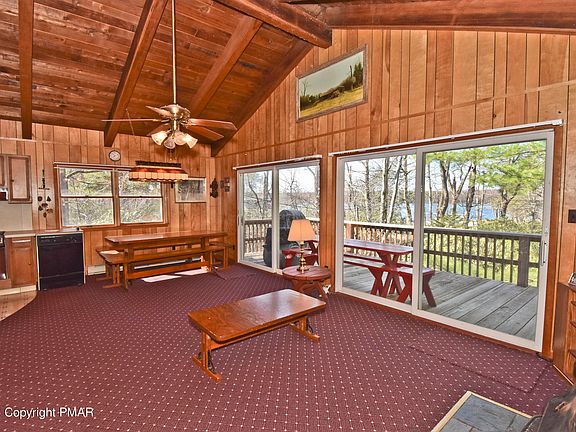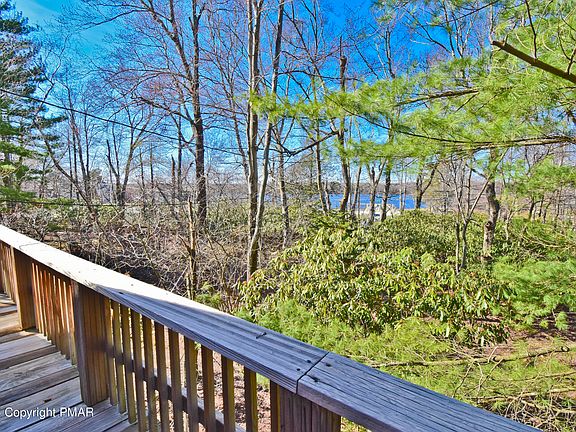 LAKE VIEW RETREAT nestled in the HEART of a desirable, STR friendly Community! This charming REDWOOD 3-4bd/2ba home offers the perfect blend of modern comfort & natural beauty, making it an ideal getaway. The OPEN LAYOUT on the main level, featuring a SPACIOUS Living Room w/ double sliders to huge deck. PICTURE-PERFECT VIEWS of the lake unfold before your eyes inviting you to soak in the surroundings. Just a few short steps directly across the street to BEACH & LAKE ACCESS! The Dining & Kitchen provide ample space for entertaining. The Primary on the main level has its own private bth. LL has 2 additional bds, a versatile den that can easily be transformed into a 4th bd, 2nd bath, & laundry area. Outside, discover your own PRIVATE lot w/ a shed for storage. Endless privacy & potential! Located in an STR-friendly community w/ tons of amenities, you can take a stroll to the nearby beach for a day of sun & sand, or challenge your friends to a game of basketball at the community court. Plus, w/ popular attractions such as Kalahari, Camelback, & Mt Airy Casino just a short drive away, endless adventure awaits right at your fingertips. Don't miss your chance to experience the magic of the Poconos from your own private lake view home.