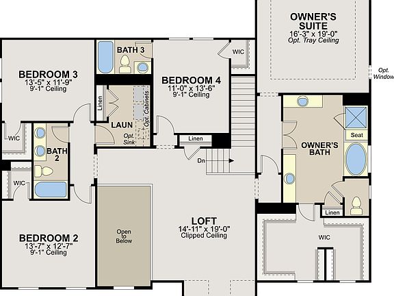 This Barrington floor plan features a gourmet kitchen, first-floor guest suite, loft, vaulted ceilings in great room, formal dining room and finished basement.
