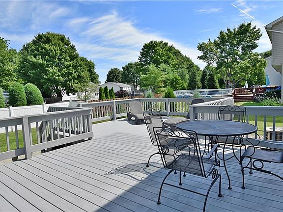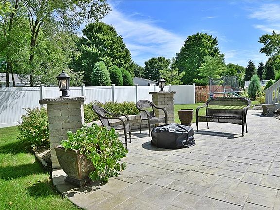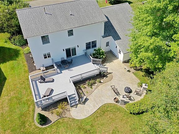 Indulge yourself with style, comfort and an unbelievable backyard with this gorgeous Cortland home! This spacious three-bedroom layout has some great highlights you won't want to miss. The prominent residence has an immediate draw with its clean exterior and lush landscaping. A personal oasis resides around back with its massive stone patio, raised wooden deck work and relaxing 'candle lit' fire pit. Step inside to an inviting tiled foyer that lends to both a posh family room and first floor laundry with nearby half bath. The floor plan opens to present the rear great room, where a partitioned carpeted living room waits before formal dining and the lavish, updated kitchen. Here, high polished granite countertops glisten under hanging lights as sunshine fills the room from the patio's French doors. Upstairs, the dark stained hallway bridges three ample bedrooms, with the guests trimmed with carpeted flooring and large closets. The larger master suite contains a walk-in closet along with a bespoke private bath with ornate stalled shower. An additional full bath completes the floor at mid hall. Downstairs, the partially finished basement provides rec space along with a dry bar, shop room and final half bath. The immcaulately kept heated garage is extremely spacious with additional storage room attached.