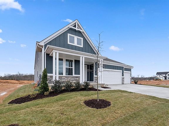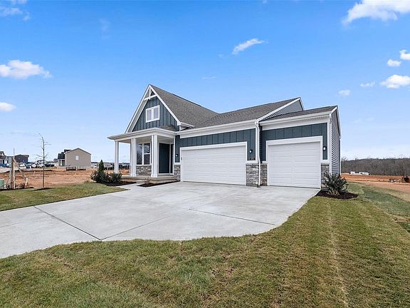 MOTIVATED SELLER! Beautiful BRAND NEW 3 BEDROOM home nestled in North Wentzville. Construction finished 02/2024 and seller's plans changed so this BEAUTIFUL home is ready to go and NEVER lived in. Home was originally built as a 2 bed with 3rd being open for an office but due to potential buyer feedback is now a full 3rd bedroom! PREMIUM LOT with 3 car garage and an amazing GAS FIREPLACE. The home has a long list of desired features including upgraded soft close cabinets, casing on all windows, a FIFTY gallon water heater, rough in plumbing in the basement, raised vanity and chair height toilet in master, GAS stove, and upgraded carpet pads and flooring throughout to name a few! The kitchen is huge and lets in a ton of natural light. Summer is around the corner and the new playground and community pool will be ready for you to enjoy. This home is easy to show so schedule your private showing today!