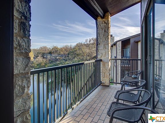 Welcome to your own hill country Paradise. This waterfront condo on the Comal River offers stunning views and serene living. Enjoy the tranquil sounds of the river, access to outdoor activities like tubing and kayaking, and a picturesque setting surrounded by natural beauty. This condo boasts balconies overlooking the water and is conveniently located in the heart of New Braunfels. Walk right across the street to Schlitterbahn or enjoy Down town life only a few blocks away. Perfect for both vacationing and everyday living. It can also be utilized in the Short term rental pool. Private entrance on ground floor leads you to this unit on the second floor. The condo is no longer furnished as seen in listing photos-giving you the freedom to decorate.