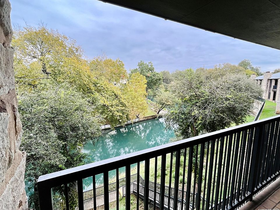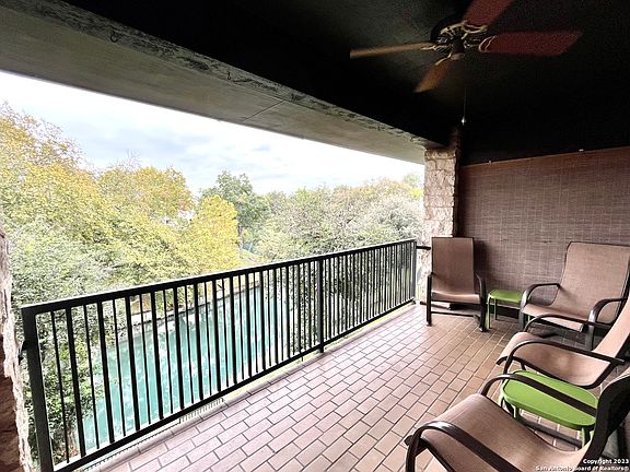 **An offer has been accepted** RARE OPPORTUNITY TO OWN RIVER FRONT IN CAMP WARNECKE! This is the largest floor plan offered with TWO BALCONIES overlooking private river access. This is a dream location for summer tourists as it is across the street from Schlitterbahn, a short walk to downtown, restaurants, and night life. Keep it for yourself or use it as a short term rental investment! Updates include granite in the kitchen, new cabinetry with slide out drawers in kitchen & primary bath, top of the line carpet & mold resistant padding, and floor to ceiling storage cabinets in 2nd BR. Extra storage added beneath the stairs AND SPACIOUS STORAGE UNIT across from front door. CONDO COMES FULLY FURNISHED. **Price is based on overall value...not square footage** Seasonal security is provided.