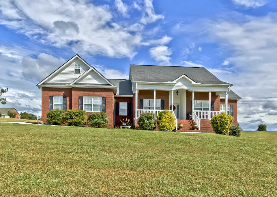 Beautiful Ranch Style Home on 3.49 Acres w/large covered front porch, screened back porch w/mountain & large pond views! 3 BR + Bonus/4th BR + Office! Open floor plan w/9' & cathedral ceilings, gorgeous hardwood floors, formal dining room, large breakfast room & breakfast bar. Large kitchen w/walk-in pantry, lots of Cherry cabinetry w/brushed nickel hardware & built-in desk w/file cabinet, tile backsplash, crown molding, stainless steel appliances, built-in microwave & new dishwasher, tile floors, & recessed lighting. Large family room has cathedral ceiling & fireplace w/remote control & automatic thermostat. Split bedroom design w/spacious bedrooms; all have a walk-in closet, ceiling fan & attached bathroom w/tile floors. Click MORE for additional features... Spacious master bedroom w/oversized trey ceiling, large walk-in closet, crown molding, ceiling fan & private entrance to back deck & screened porch. Spacious master bath w/enclosed toilet room, double sink vanity, corner jetted tub w/tile surround, separate shower, tile floors, & brushed nickel light fixtures. Bonus room could easily be used as a 4th bedroom/2nd master suite, or great for entertainment/media room, office etc. (HVAC ââ split unit w/separate thermostat for bonus room.) Spacious laundry room, with both a walk-in closet & linen/broom closet, utility sink, tile floors, and shelving for more storage. Upgraded brushed nickel lighting, fans, door hardware & fixtures, security system w/cameras & TV monitor, and keyless entry. Oversized 2-car side entry garage, deck is great for grilling (gas line could easily be installed), gorgeous screened porch w/cathedral ceiling, ceiling fan & full-sized swing overlooks beautiful large lot with large pond water views. Home has ambrick front w/easy maintenance vinyl siding and front porch railing is vinyl for easy maintenance. Huge mostly level yard w/large storage building... Large enough to hold 4 wheelers, lawn equipment etc. and is set on a brick foundation w/matching vinyl siding (building is connected to the security system also.). 300 gallon propane tank fuels the fireplace; also could easily connect to a line for grill and a gas kitchen range line is present (current tank lease fee is $60/year w/Holston Gas. Full tank lasts for a 2+ years depending on usage.) HVAC is electric. Survey is available, and all lot pins are marked w/stake beside pins. Neighborhood has no HOA and is beautiful and well maintained. This beautiful home is loaded with upgrades and very well maintained... and is 'like' new!