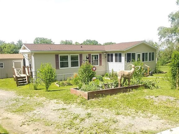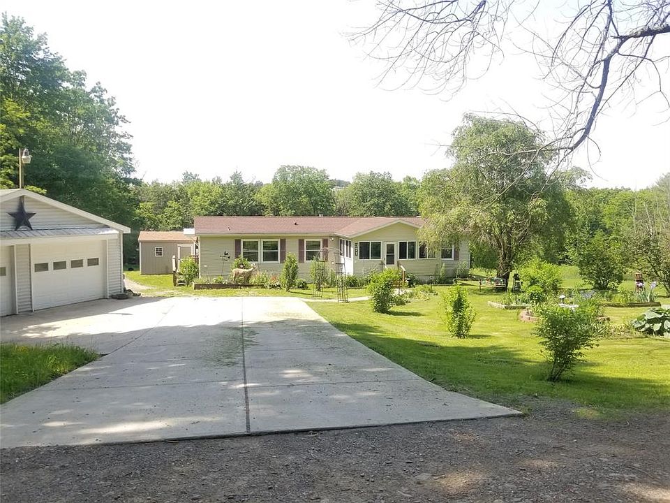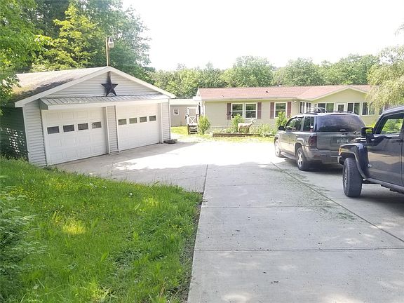 2005 Double wide with 3 bedrooms ,2 full bathrooms with central air conditioning ,new appliances ,new whole house generator .Walk in tub installed 2019 in master bathroom .Over $80,000 in home improvements since the owner purchased , new windows and a new pellet stove in 2017, new roof 2020,concrete driveway 2018 enclosed front porch 2019, 2 car over sized garage with garage door openers ,heat ,electric, new 24 x 12 garage with tool storage room.Aluminum shed 2016.Nice stocked pond for fishing,great hunting with dear stand,the property has beautiful landscaping , many raised gardens,fruit trees ,berry bushing. All of this on almost 6 acres country property just 10 minutes from the 17 Expressway .Close to shopping ,gas stations ,restaurants and Tioga Downs Race Track and Casino .