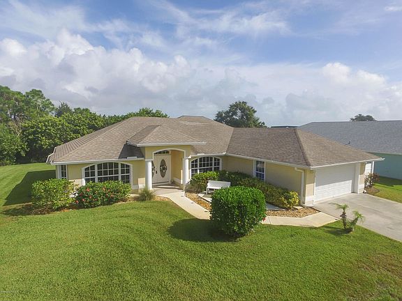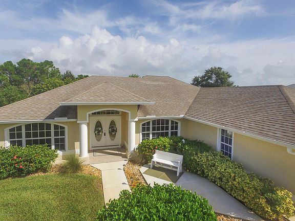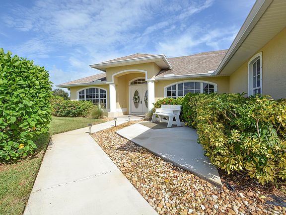On a peaceful corner lot this well-maintained 4 bdm Ammaron design is just down the street from the Indian River and has concrete boat pads. Decorative glass doors open into a spacious interior enhanced by vaulted ceilings, multi-level walls, and built-in display shelves. Stainless appliances, granite counters, breakfast bar & a window wrapped nook create the kitchen. New energy efficient 4 ton a/c cools the split floor design. Double vanity, soothing garden tub plus a tiled shower in master. Hurricane impact doors open to a large patio framed by colorful plants. Two exterior storage areas & a 500 gallon in ground propane tank to fuel the gas stove. Small-town ambiance close to all the conveniences. Full 1/3 acre building lot behind house is available separately.