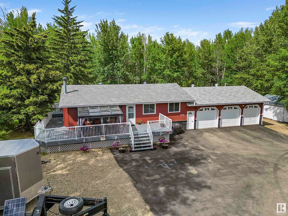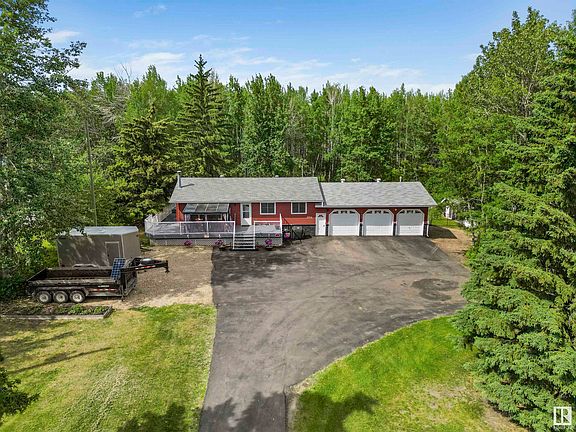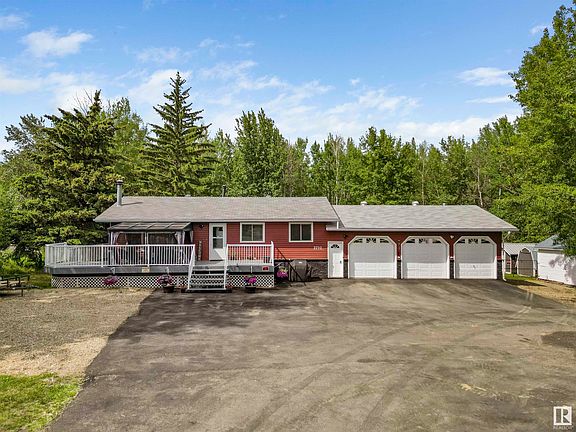 Completely renovated bungalow with attached & heated triple garage located in Drayton Valley on 0.95 acres! Completely renovated inside and out, this 1,058 sq ft home comes with 5 bedrooms, 2.5 bathrooms, and completely finished basement. Starting in the living room is a large new vinyl window accompanied by new flooring, a beautiful wood burning stove and new paint that extends into the rest of the upstairs. The kitchen is beautifully done with quartz countertops, new cabinetry, black stainless appliances with gas range, and a perfectly sized area for a dining table. Rounding out the upstairs are 3 good sized bedrooms, and a newly renovated 4-pc bathroom. The recently renovated downstairs features a huge living area with two large bedrooms, a large utility/storage room as well as a beautifully renovated 3-pc bath with standup shower. The large triple attached garage has in-floor heating and a half-bath! The yard features a massive wrap around deck with a soothing hot-tub, three sheds and a firepit area.
