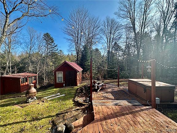 Year-Round Furnished 2 Bedroom Cabin Nestled in the Woods of the Adirondacks. Hardwood Floors, Vinyl Windows, Living Room With Fireplace, Deck, Hot Tub, Enclosed Sun Room Currently Used For Workshop & Wood Storage, Shed & Screened Gazebo Overlooking the Woods & Creek. Partial basement for Mechanicals. 3 minutes to Hinkley Lake. Close to all of the trails for snowmobiling, 4-wheeling and near state land for hunting.