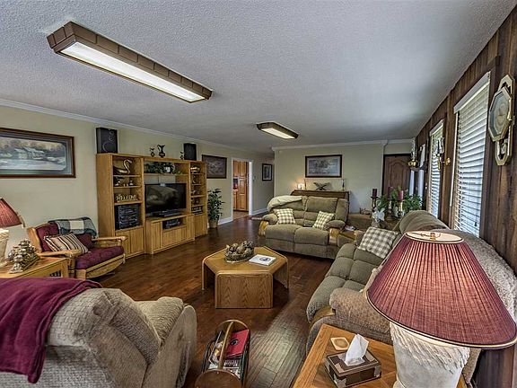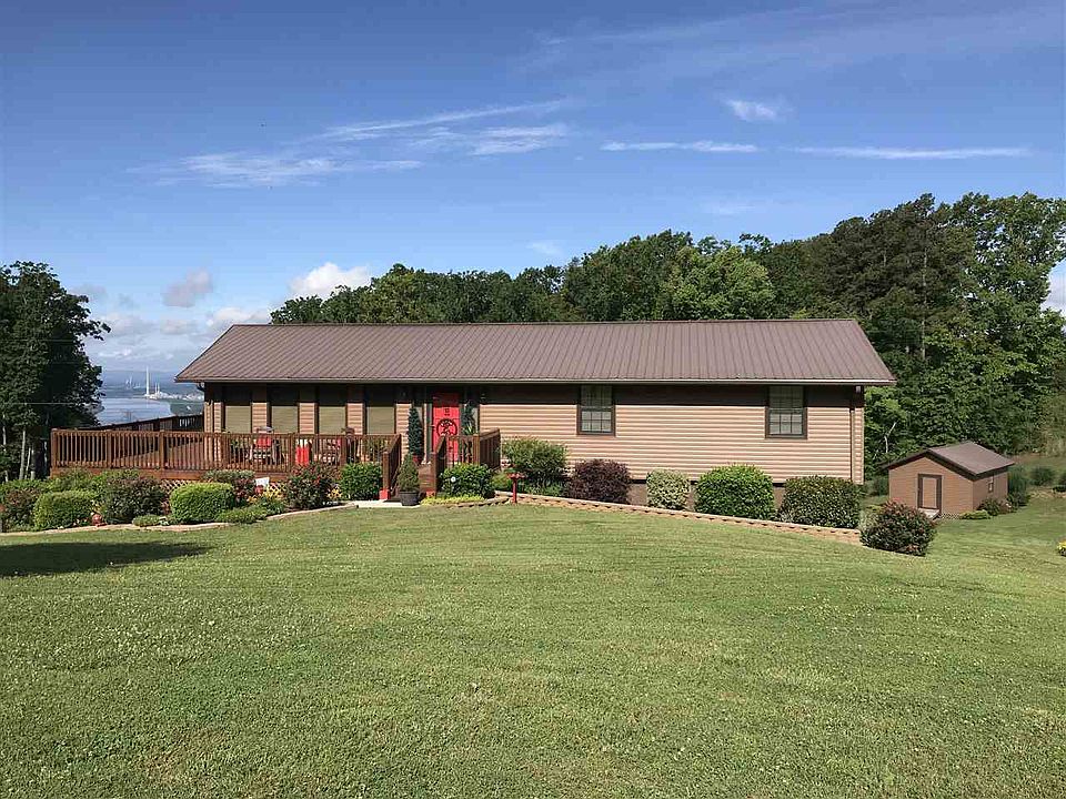 Well maintained home with a view of the Tennessee River! Spacious living and dining areas with hardwood flooring, large master bedroom with walk-in closet, double vanities in the main-level bathroom with jetted tub/shower combo, downstairs you will find a large family room as well as a kitchen, sunroom, 3/4 bathroom/laundry room, and storage area. Double garage, large detached storage building, hot tub fully enclosed with deck around it, paved driveway, carport/pole barn, additional septic tank, and beautiful landscaping.