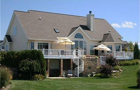 This home is located on the Harbor Ridge Golf Course with a panoramic view of Lake Erie. There are hardwood floors throughout the first floor, and the master bedroom suite has its own exit on to one of the multi-tierd decks at the back of the home. There is a covered patio with hot tub and a spiral staircase joins the patio to the upper level deck. The open floor plan is accented with a two-sided fireplace for the kitchen as well as the family room.
