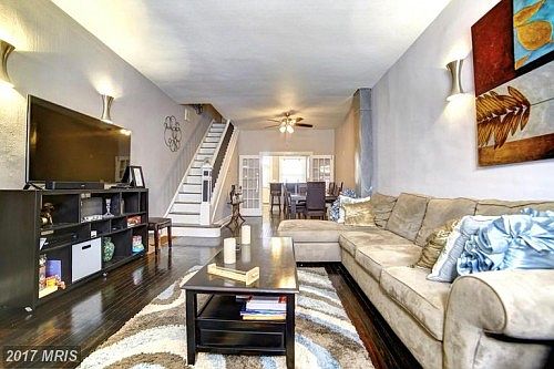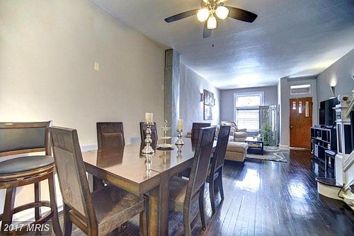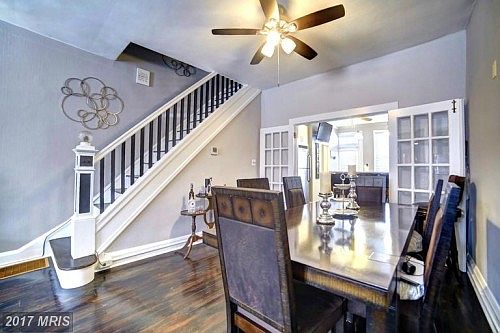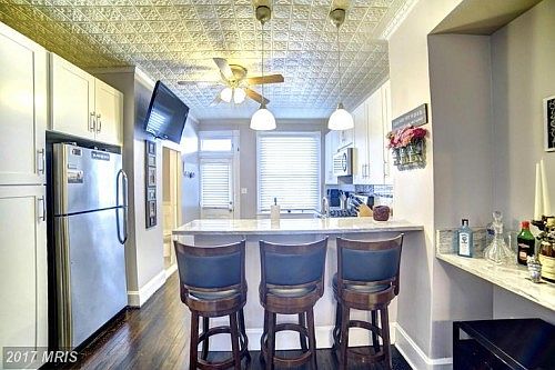 Want to live in up and coming Brewers Hill? Updated, yet with many original features, this move in ready home has 10ft ceilings throughout, original french doors, large separate dining room, updated kitchen with granite counter tops, breakfast bar, original tin ceiling in kitchen. 2 large bedrooms, walk in closet that is connected bathroom, separate tub, separate shower. Refinished hardwood floors