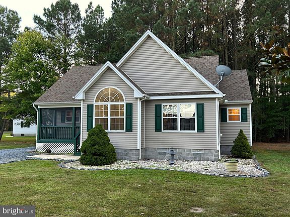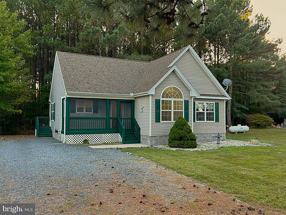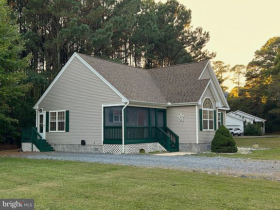 Take a look at this well maintained 3 bedroom, 2 bathroom, ranch style home located on a quiet cul-de-sac street in the county limits of Crisfield, MD. This home is situated on just over a half acre and backs up to trees which offers privacy. There is a nice screened in front porch great for enjoying morning coffee and evening sunsets. Inside the home, you will find cathedral ceilings in the dining and living room which makes the home feel much bigger. The kitchen is conveniently located off of the dining area. All of the appliances are electric and stay with the home. The 3 bedrooms and 2 bathrooms are located on the other side of the home. The master bedroom offers a walk in closet and its own master bathroom with a double vanity sink. This is a 2 owner home with the second owner living in the home over 20 years. The home is serviced by public water and sewer and does require flood insurance. Call today to schedule a private tour.