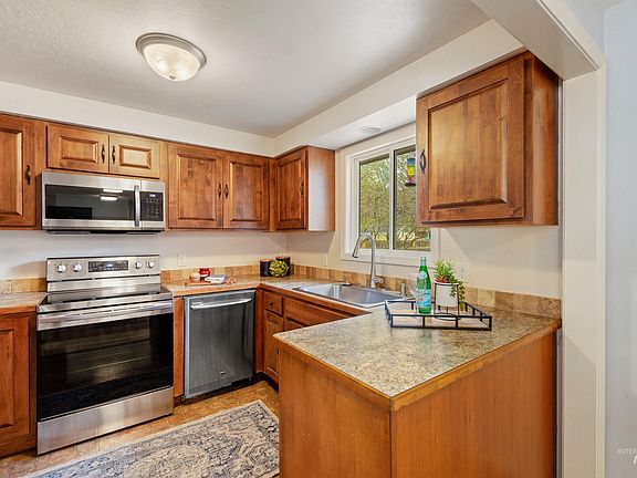 This spacious Mid-Century home is tucked in a prime Bench location. Over 2300 sq ft, 5 bedrooms & 2 baths with room to spread out. The charm of yesteryear coupled with modern updates - all new roof, lighting, stainless appliances, refrigerator, sink & fixtures. The open great room features an elegant stone-faced fireplace, newer hardwood flooring & designer paint. Enjoy the beauty of the outdoors from your screened Sunroom. The lower level boasts two bedrooms, a bonus room with fireplace, new carpeting, paint & trim. All the hard work has been completed – New Roof, New interior & exterior paint, new concrete driveway with extra parking. The .23 lot is an empty slate, with new sprinklers, valve & controls. Nestled in an established neighborhood 1 block from Mountain View Elementary School & minutes from BSU, Downtown, restaurants & recreation and more.