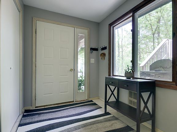 This is a 4 bedroom split entry tucked in a small development North of Bemidji. The home is on a beautiful wooded lot with a large deck for out door living and a very private backyard. The home has a spacious entry and has been updated featuring granite countertops in the kitchen and main bath, solid surface wood type floors and a modern tiles gas fireplace upstairs. The walkout basement also has a fireplace and a family room, 2 bedrooms and a bath. Be prepared to fall in love.