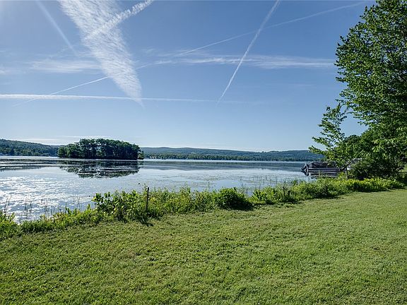 This Immaculately well kept home sits on over 1.5 acres and boasts 146ft of Lamoka Lake frontage. Nestled at the end of a Dead end town Maintained Road , this 3 bed and 2 Full bath Cape Cod home has a new Standing Seam Metal roof, with an updated kitchen and dining area and plenty more updates throughout. Open floor plan concept Kitchen and living room with access to the deck with beautiful views out to the lake and a first floor bedroom and full bath, laundry and a nice relaxing 3 season room to sip your morning coffee. The second floor consists of a Full Bath with 2 bedrooms, the lake front bedroom has a deck to sit out on and take in all this property has to offer. Beautifully landscaped grounds with 3 outbuildings 2 of which have electric and a Solar panel down by the lakefront that helps keep those bills low. Plenty of storage also available in the Full basement and 2 car attached Garage. This Year-round home oozes build quality and has a very private Lakefront Feel.